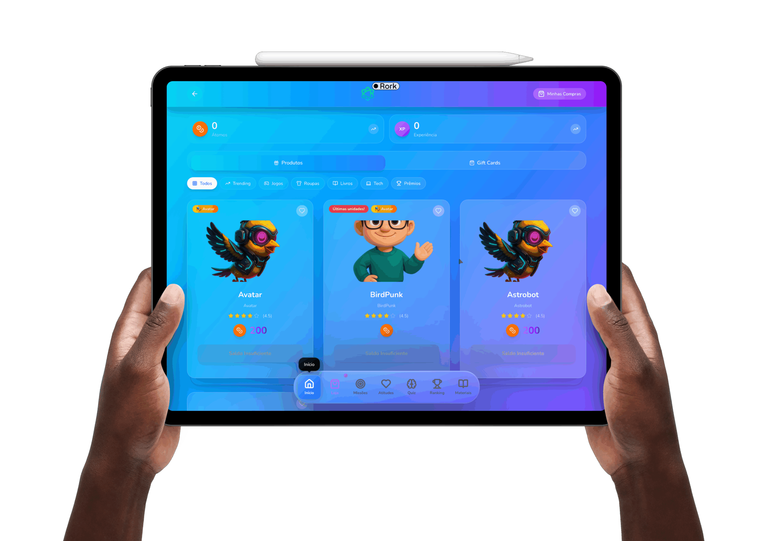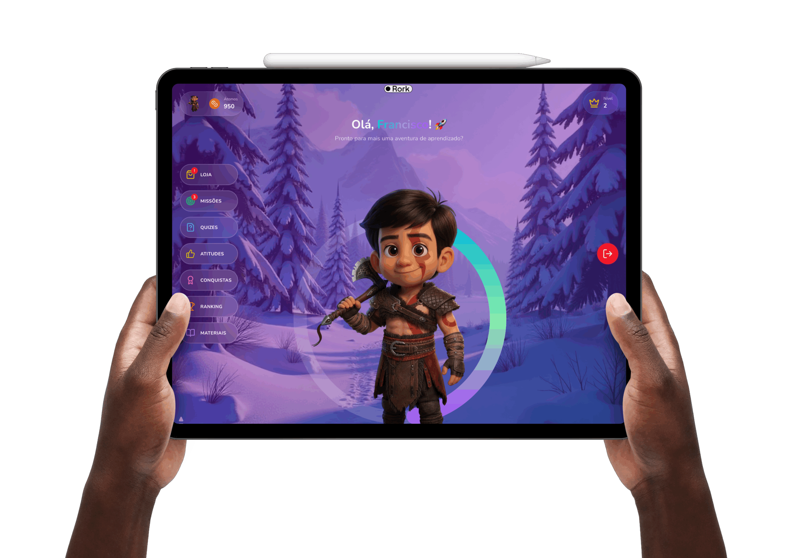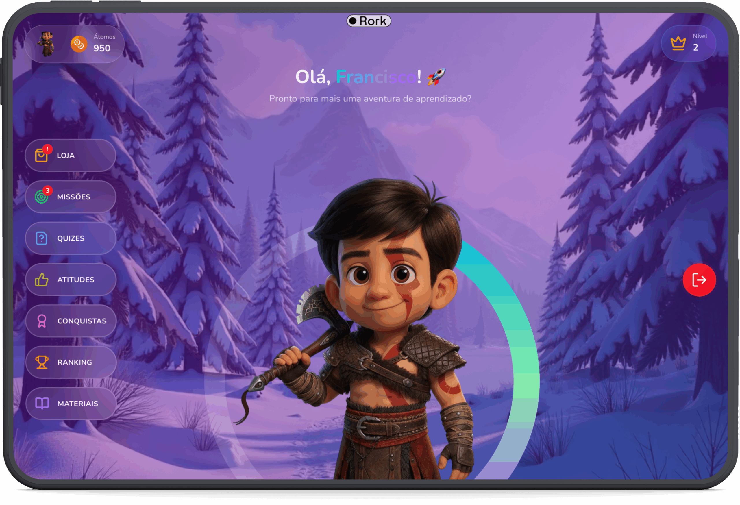 Ao iniciar a aventura em nosso app o aluno seleciona em qual ambiente ele quer estar durante o aluno, e todos os avatares e níveis seguem o ambiente acompanhando a evolução do aluno ao longo do ano.
