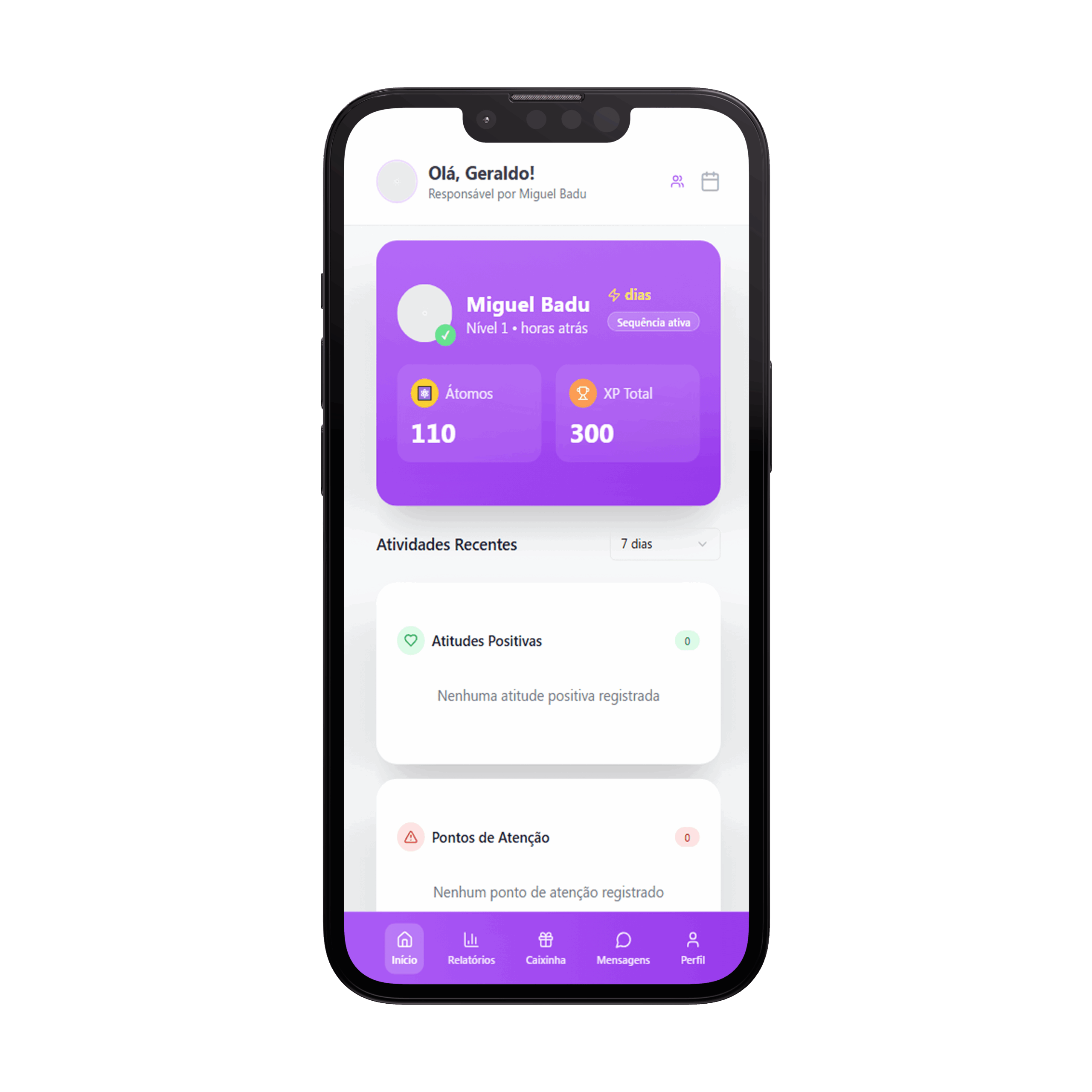 Os responsáveis tem acesso ao app com.o acompanhamento em tempo real do desenvolvimento do aluno no app. Recebe notificações via Push das atitudes negativas/positivas do aluno na escola.